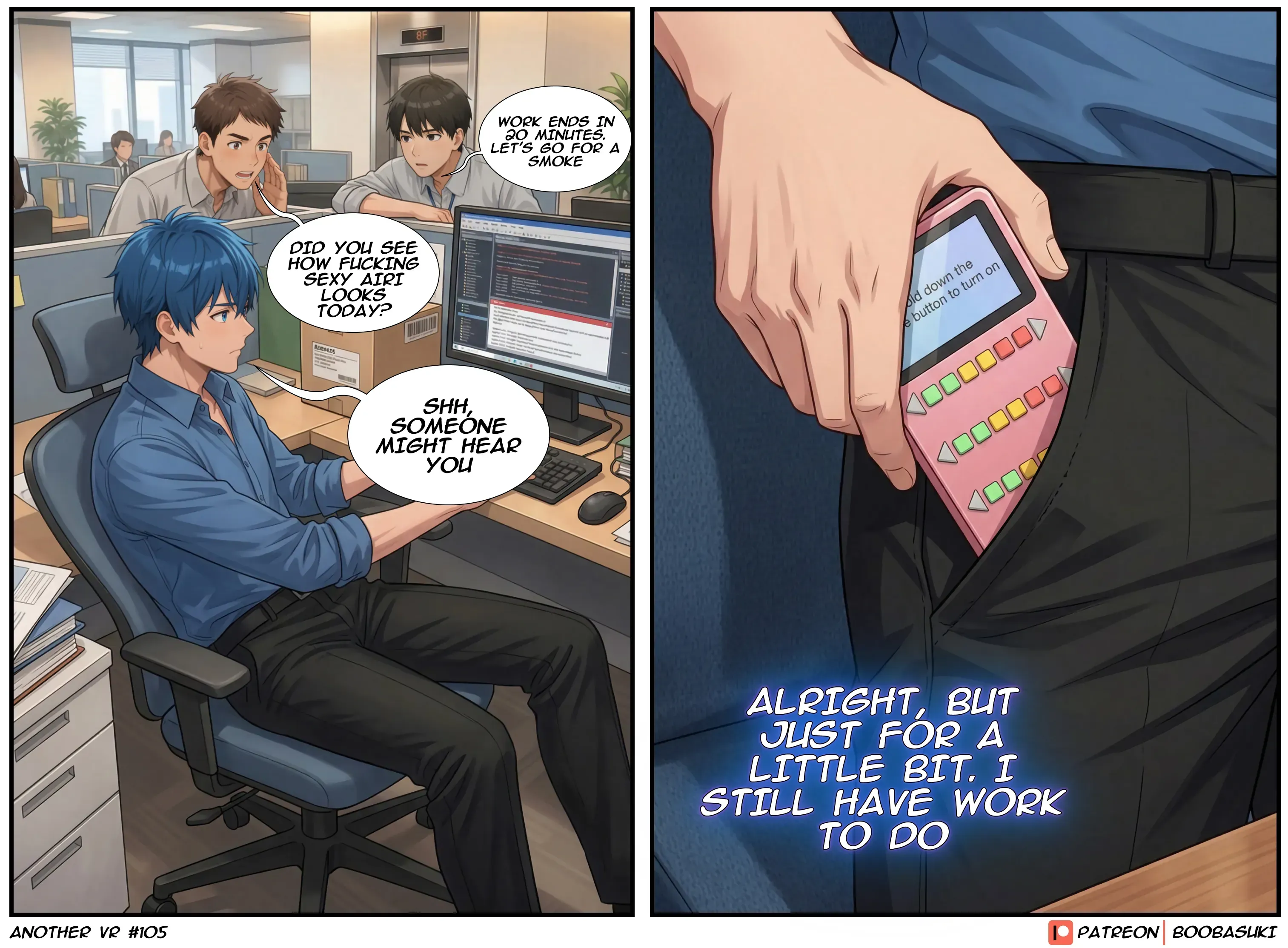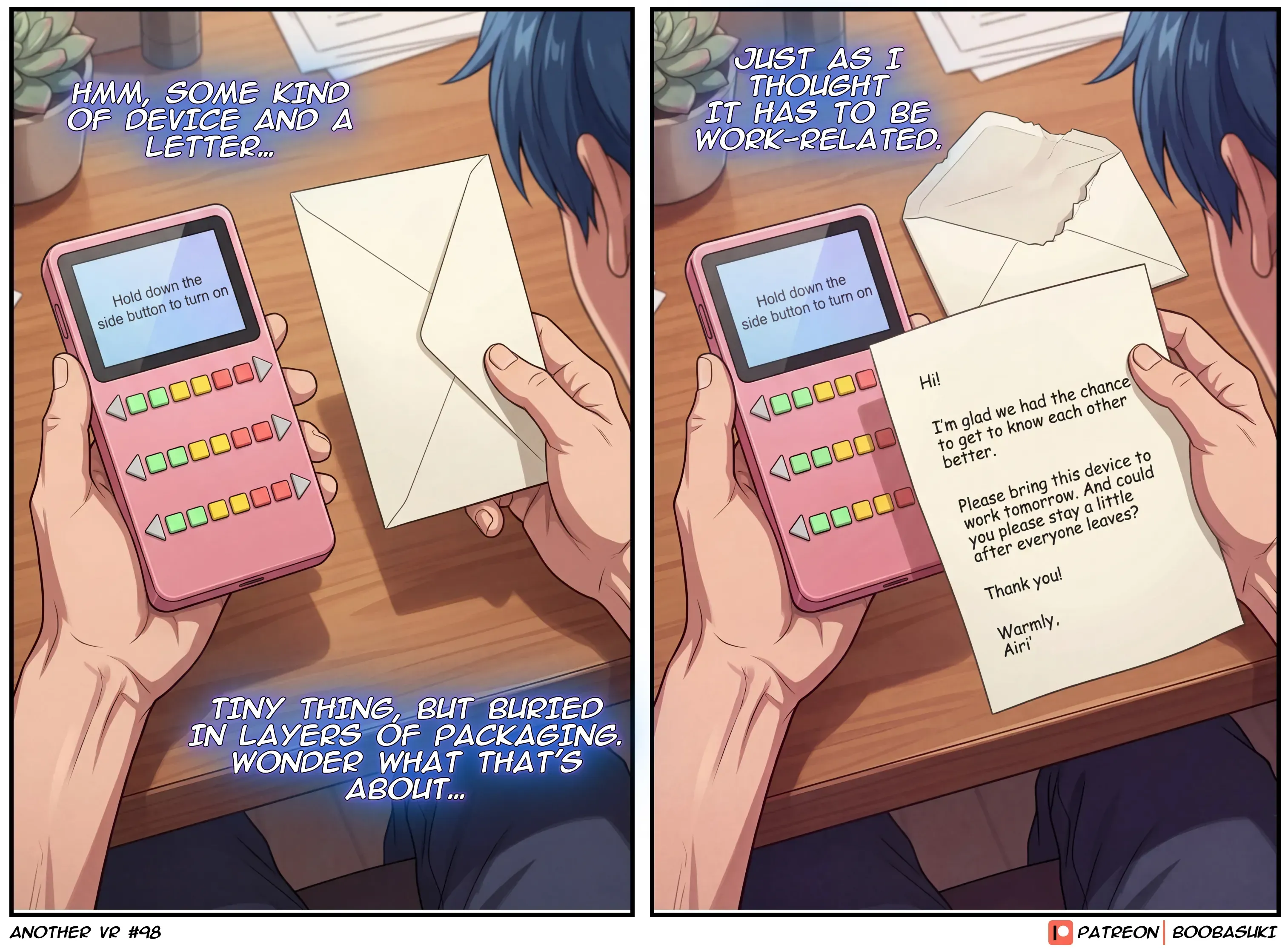 Rei receives an unusual device from Airi as a gift before their date after work and tries to figure out what it actually does