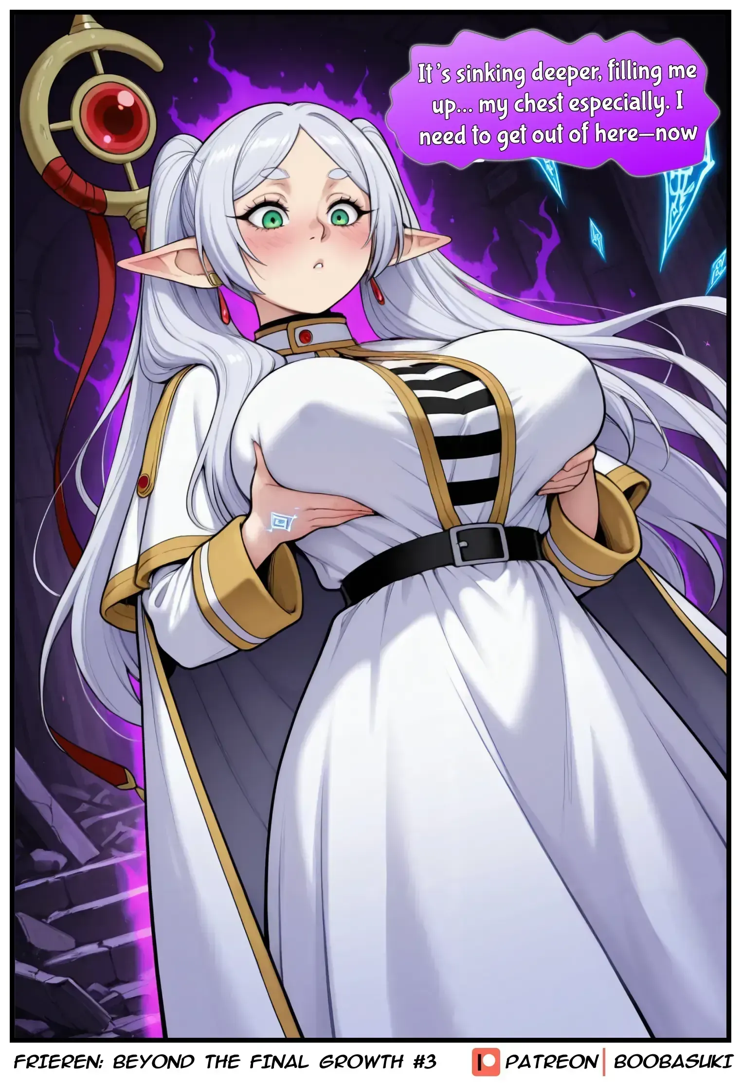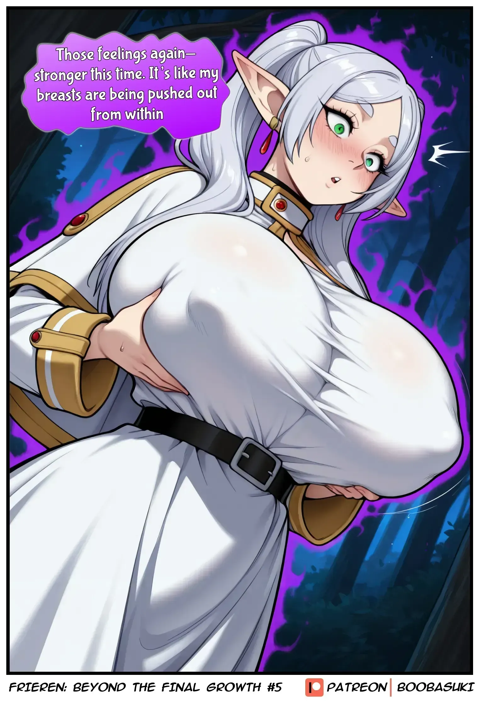 Frieren finds a strange artifact in forgotten ruins. Her breasts begin to grow… and won’t stop. What awaits the elf in this “Final growth”?