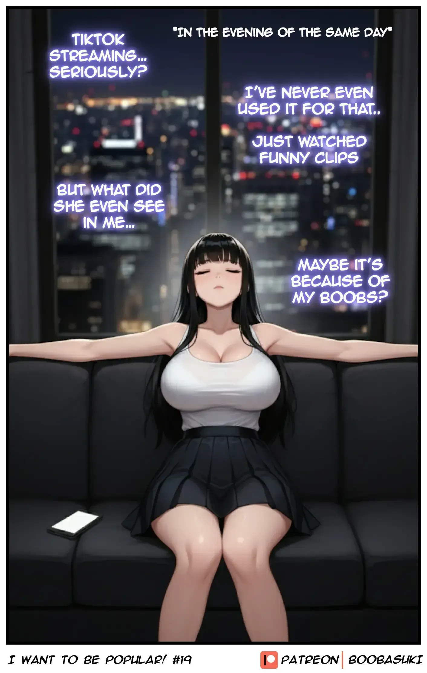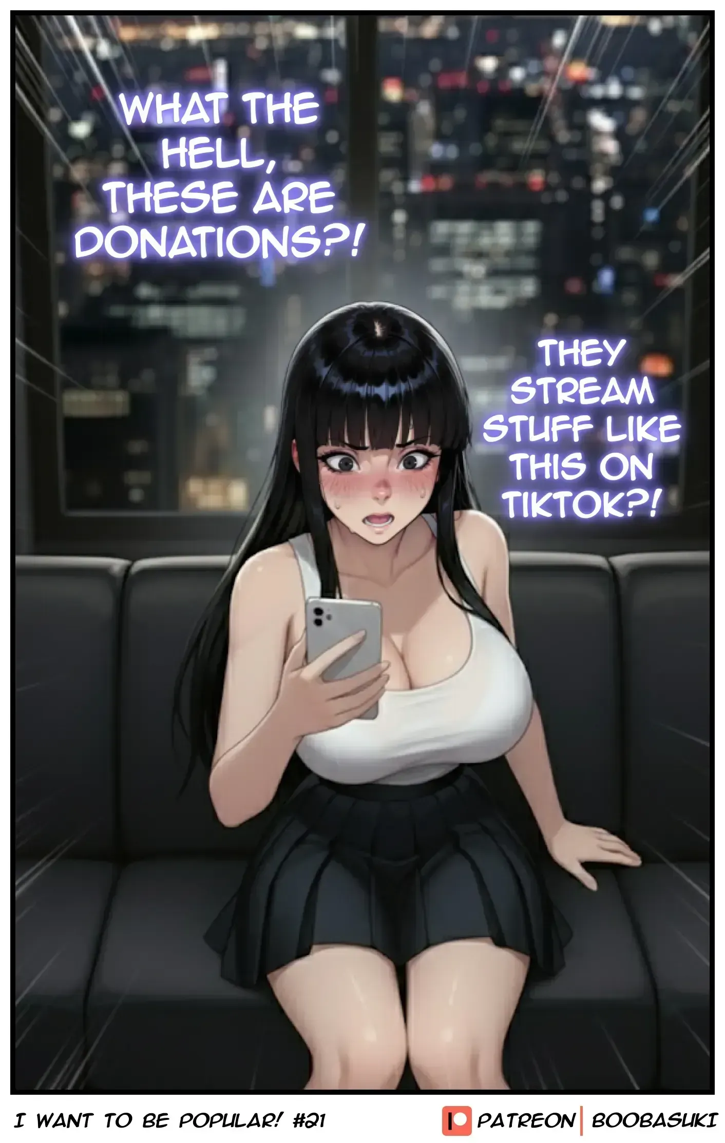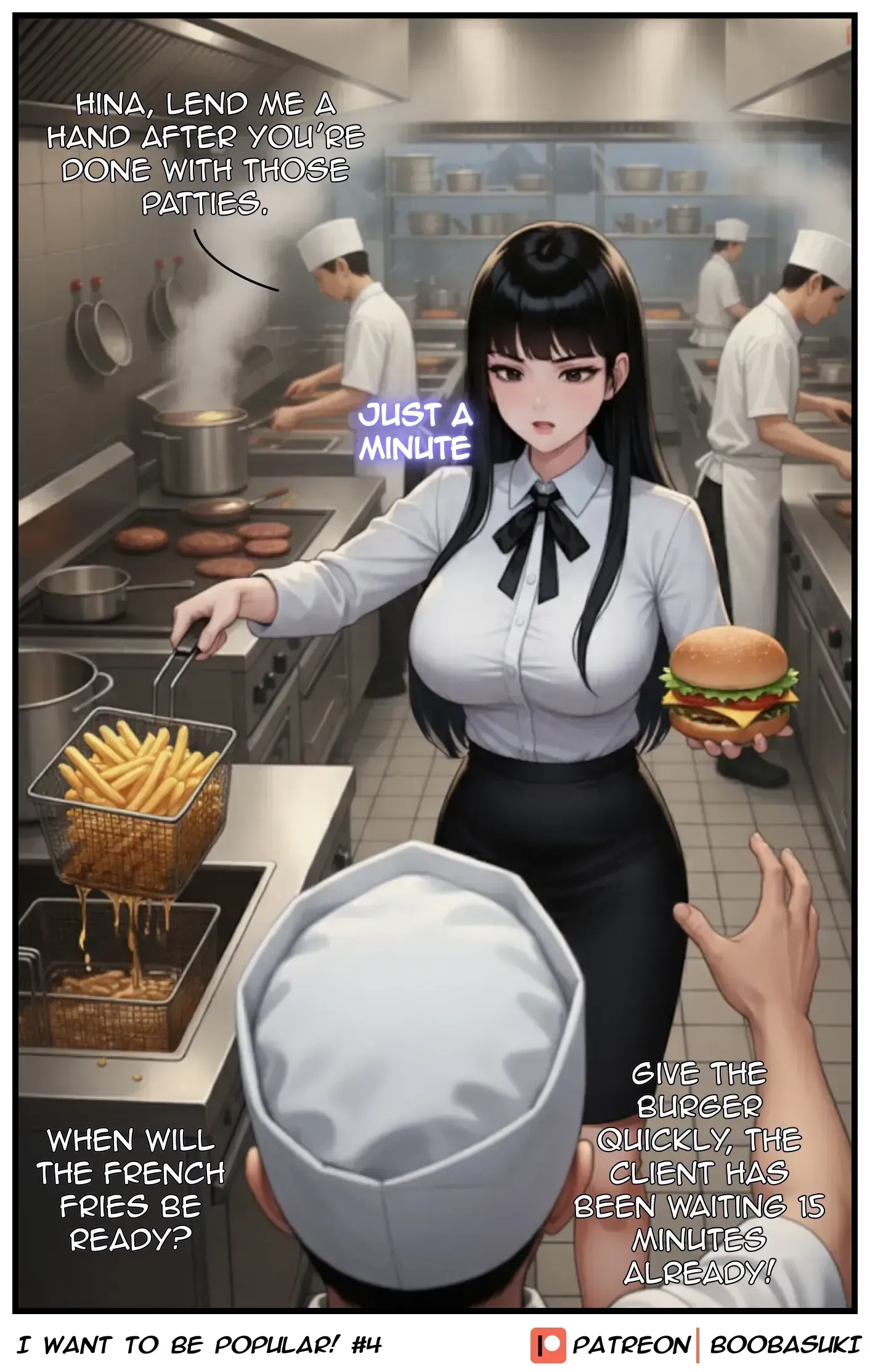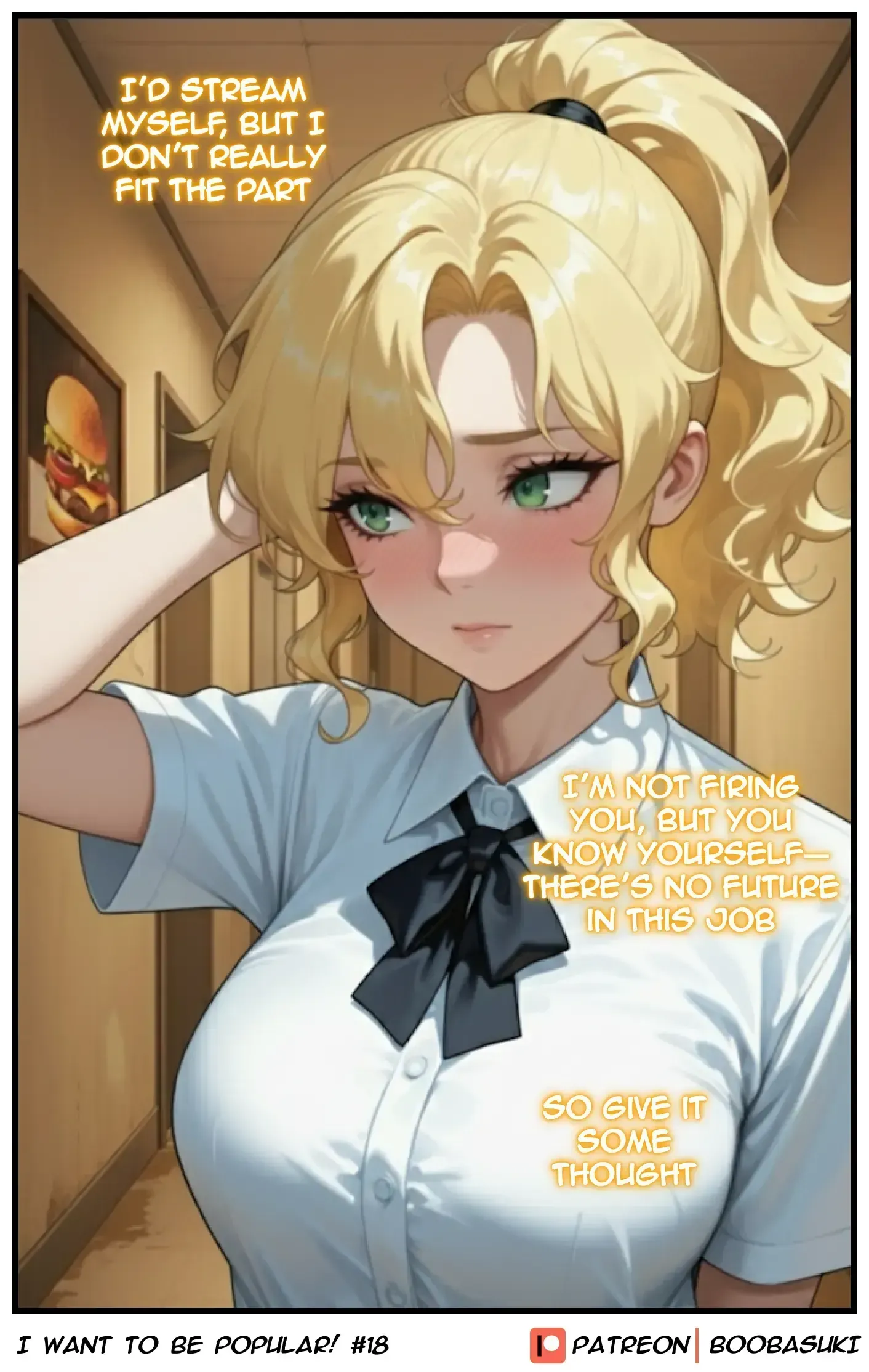 I Want to Be Popular is a story about a girl who works in the food service industry but dreams of popularity and attention. Deciding to try herself as a streamer, she discovers the platform’s unusual features: with them, she can change the size and shape of her body right during the broadcast!