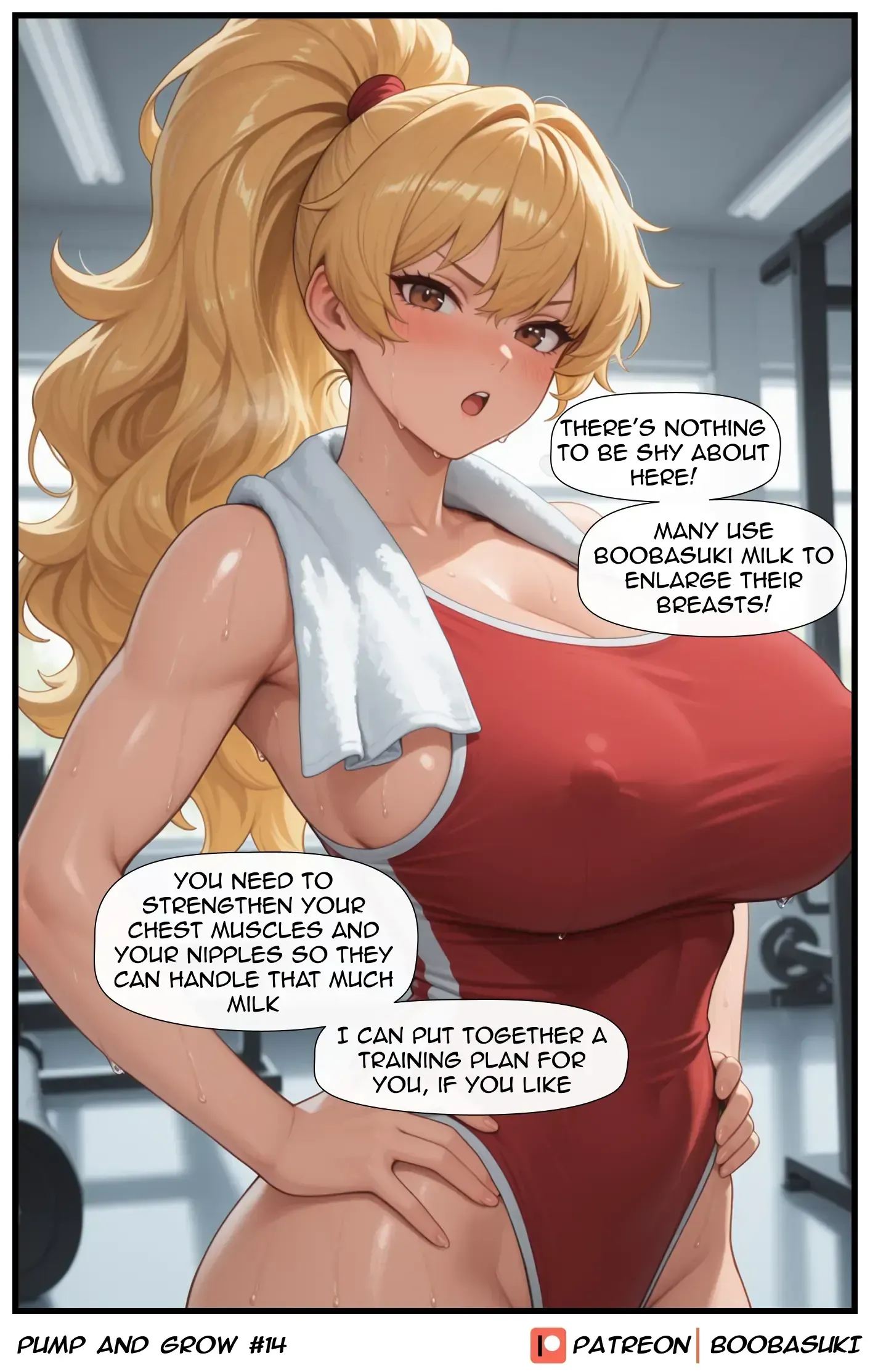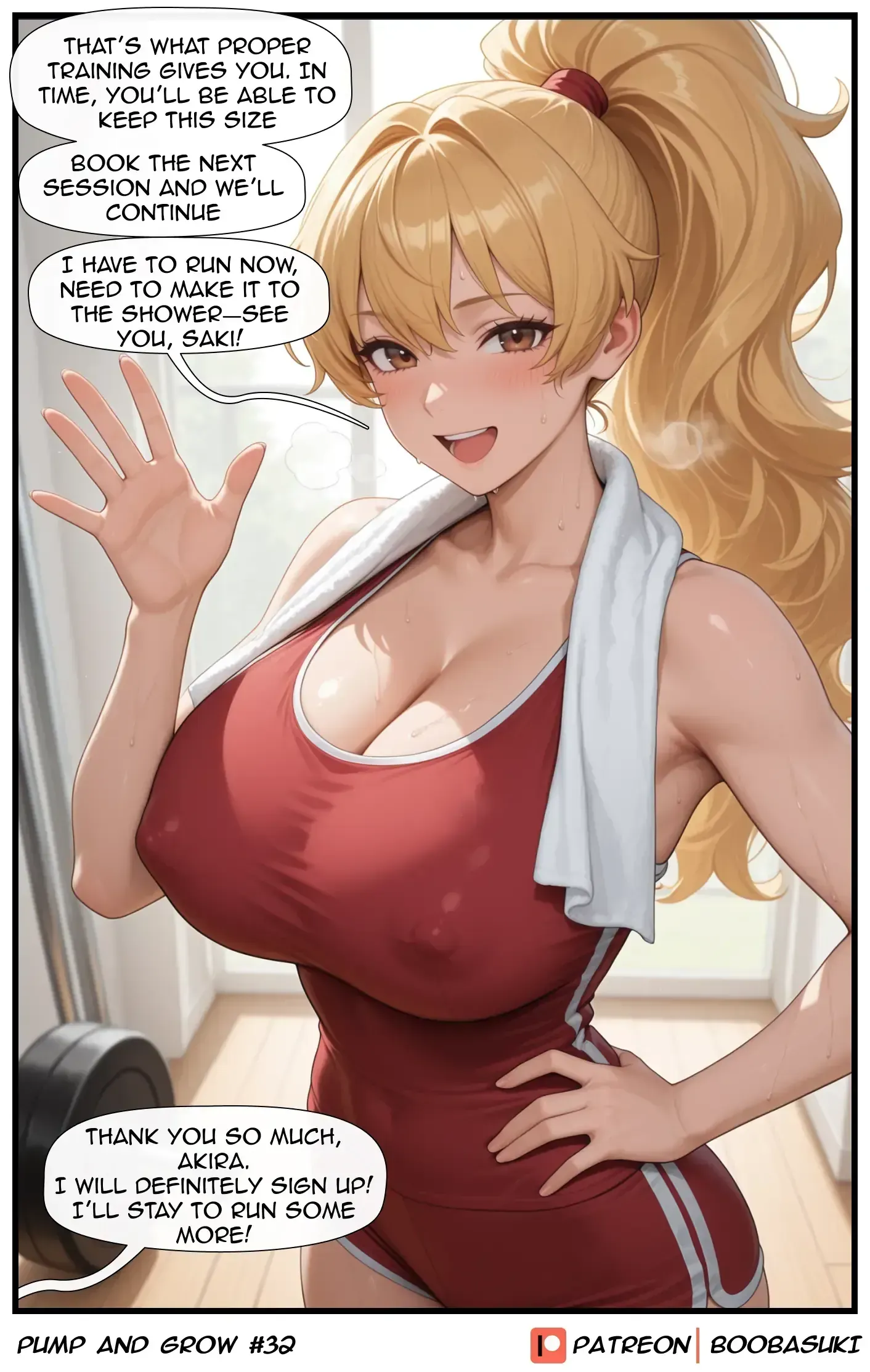 In Part 2, Saki decides to hire a breast growth trainer and meets Akira at the gym
