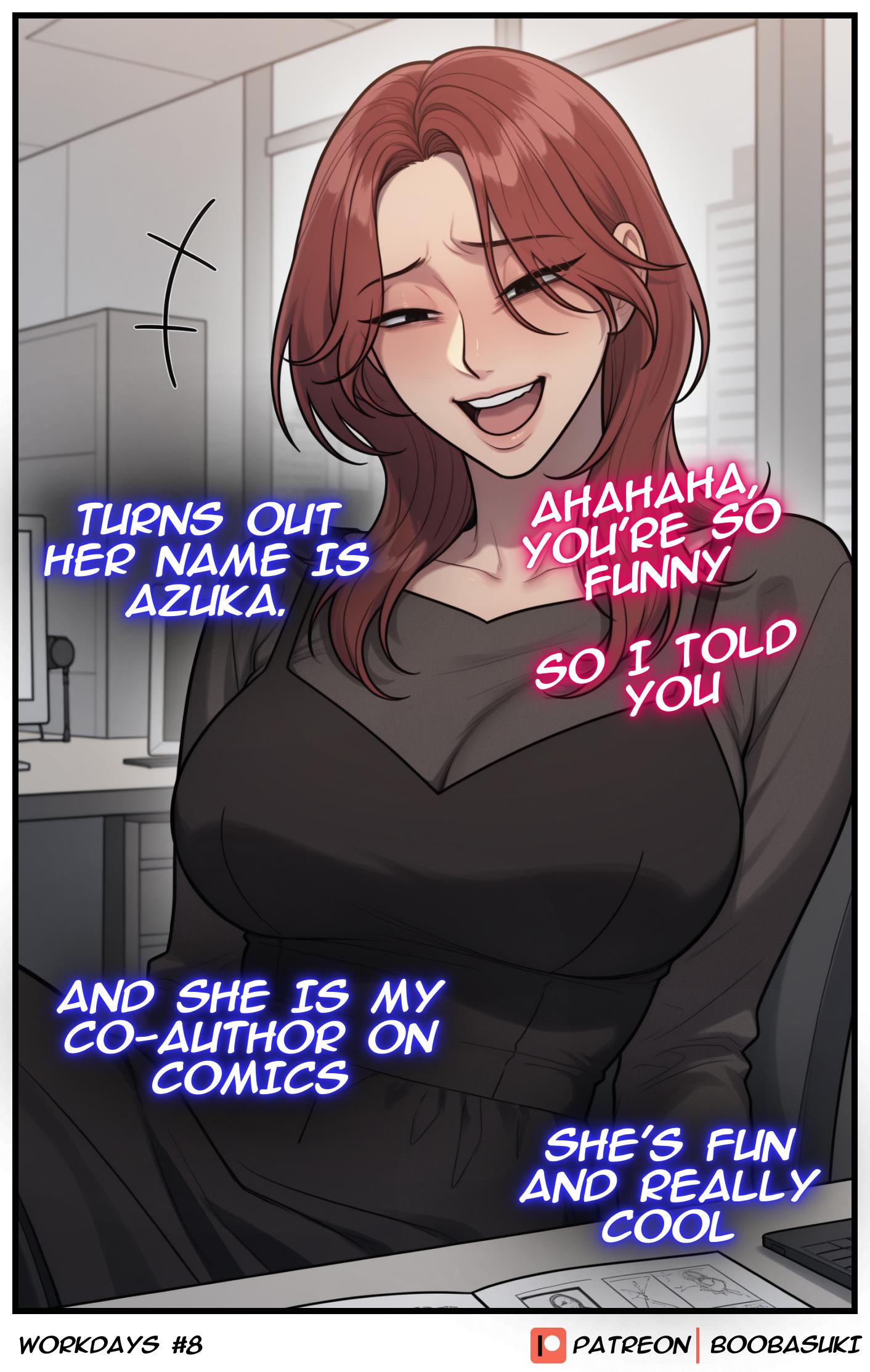 Workdays — a short comic about the behind-the-scenes life of the manga and comics world!The main character is a young mangaka starting his career at Boobasuki Comics. Here, he encounters the daily grind, intriguing colleagues, and unexpected situations.